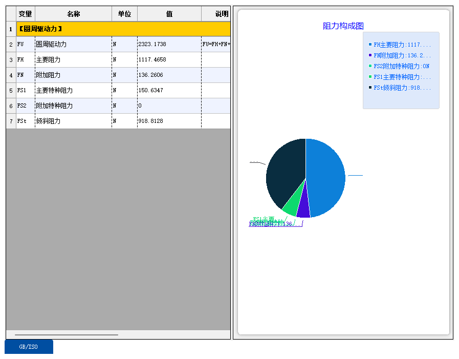 圆周驱动力相关阻力的对比表和图。